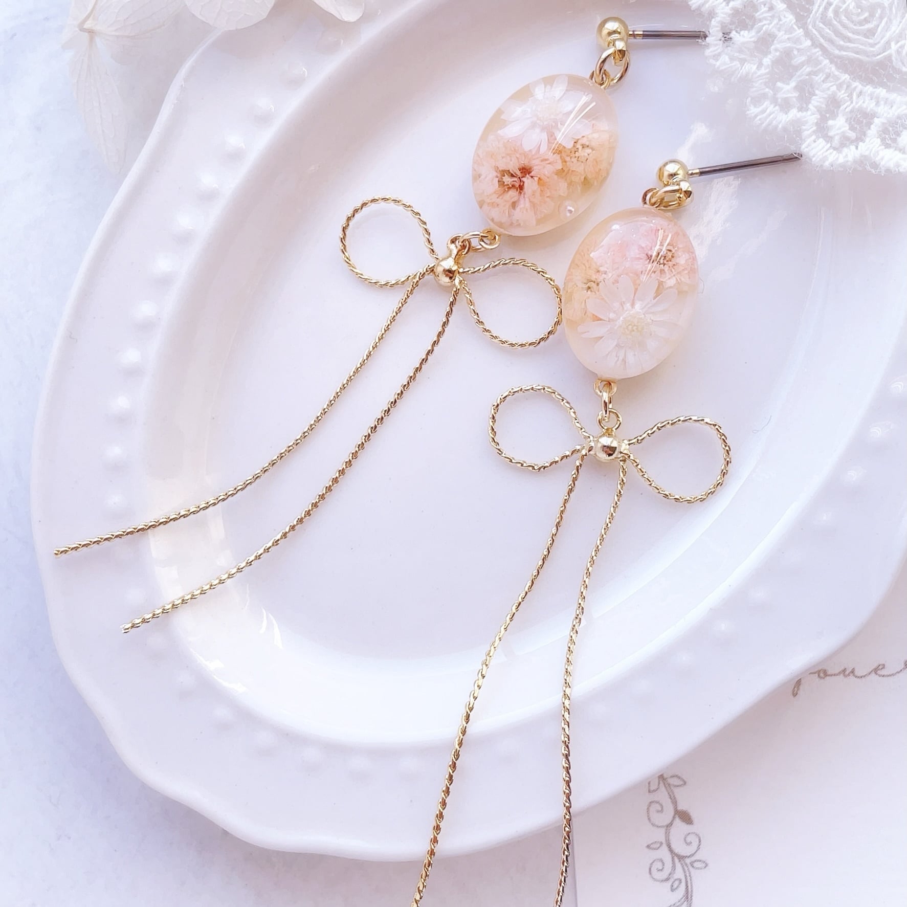 Parfait "パルフェ" リボンチェーンピアス/イヤリング(cream orange)