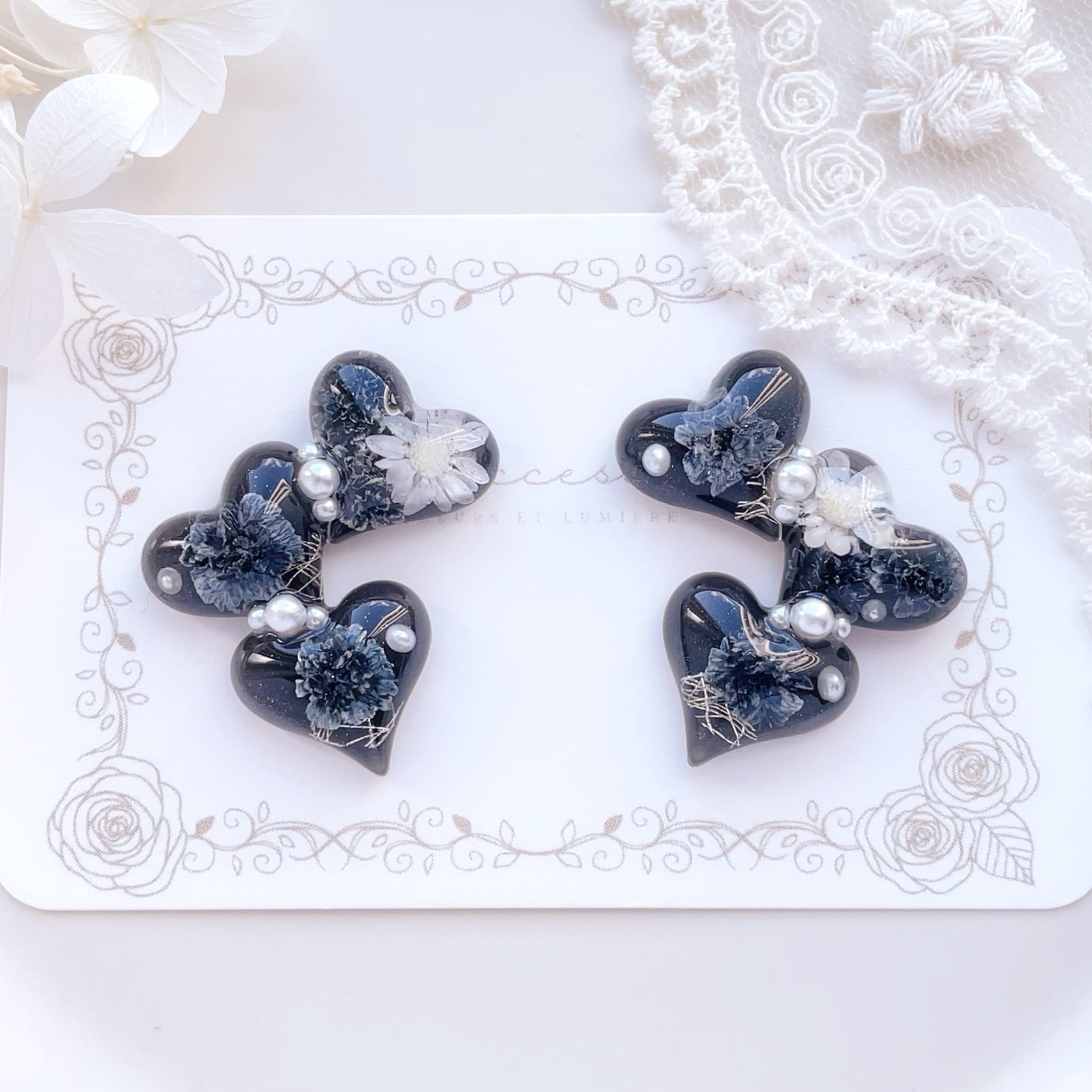 【オーダー受付】Michelle "ミシェル" ピアス/イヤリング(noir black)